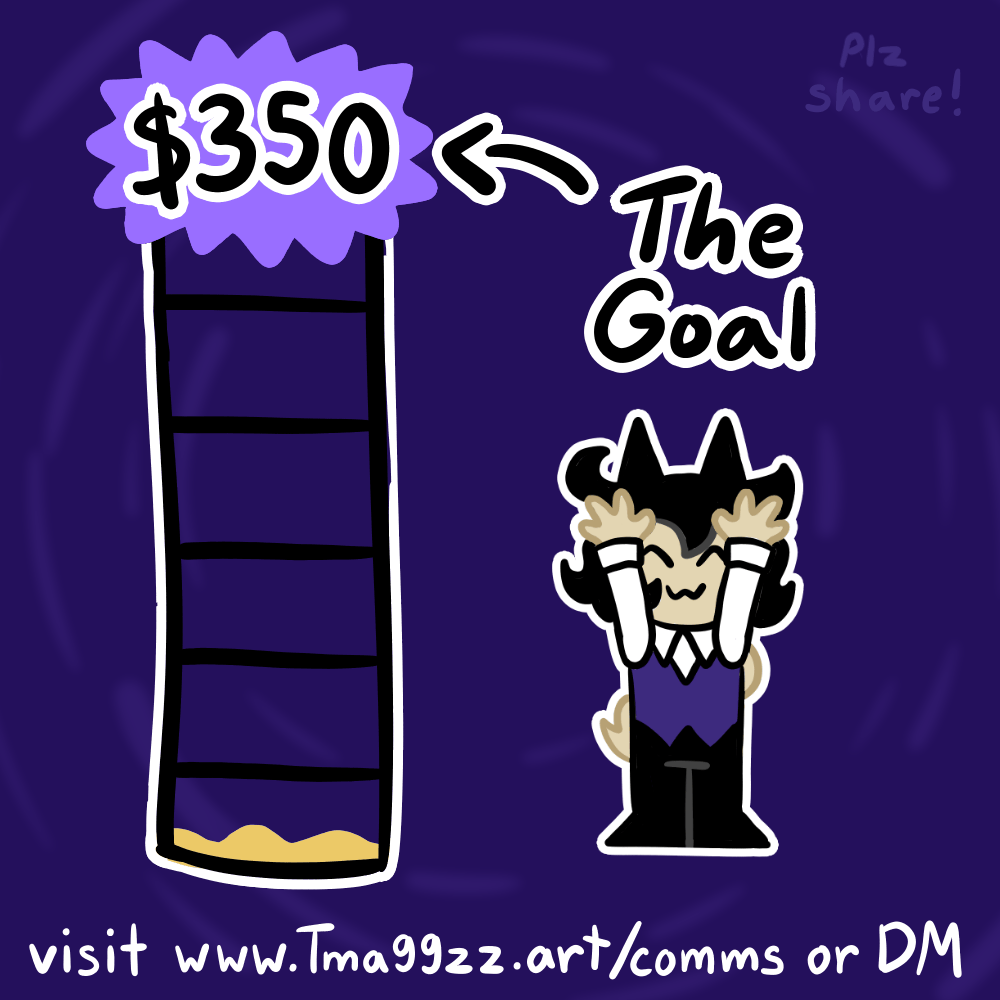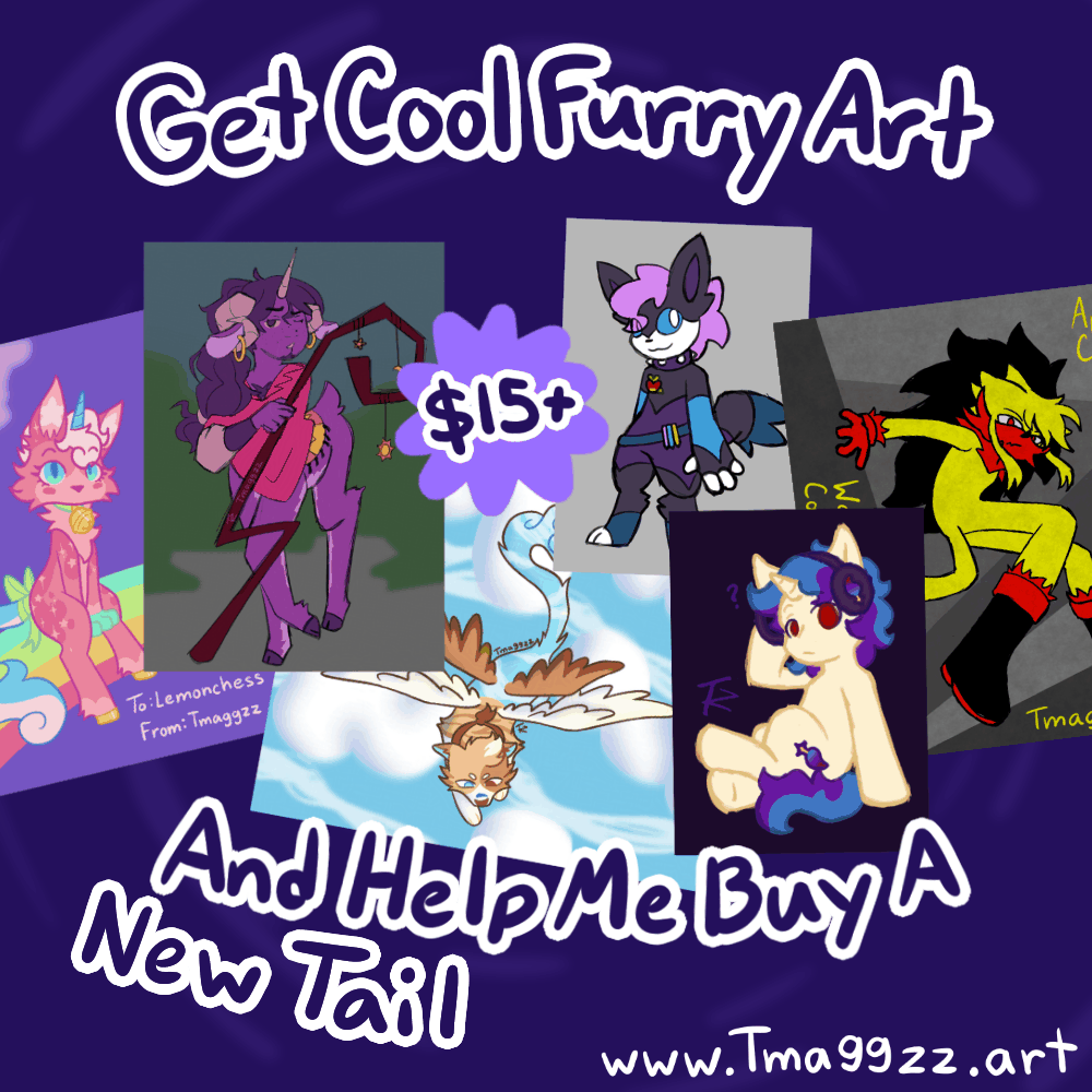 I have a goal! Please buy a commission to help me fund my first fursuit tail. Click the button if you’re interested and please share this!