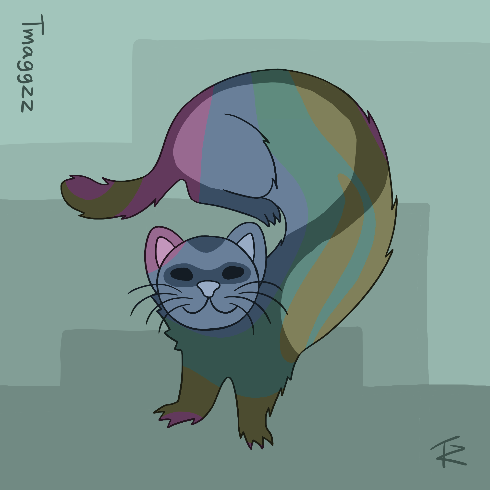 A series of soft drawings featuring both common and exotic animals in Spring themed colors. Animals: mouse, binturong, rabbit, ferret, axolotl, snail. Now available in the shop as post cards!